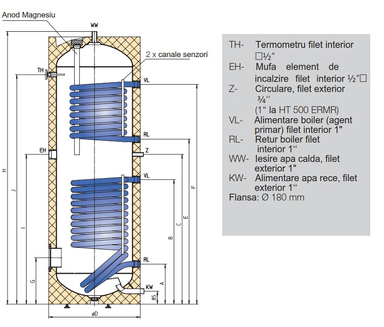 Caracteristici Boiler indirect cu doua serpentine Austria Email HT 200 ERMR – 200 litri