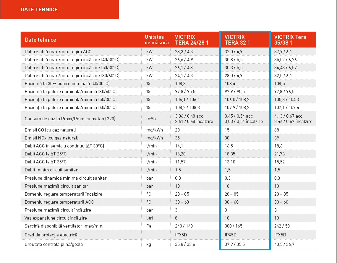 - Putere utilă max./min. regim ACC – kW – 32,0 / 4,9